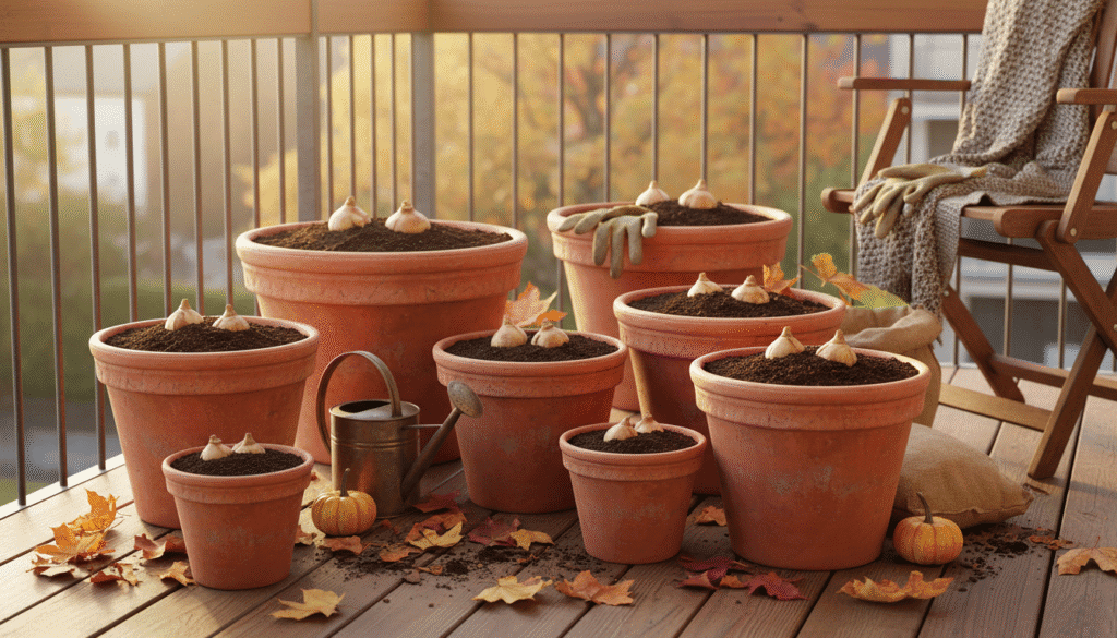 - After planting, store the pots in a cool, sheltered spot (like a garage or balcony corner).